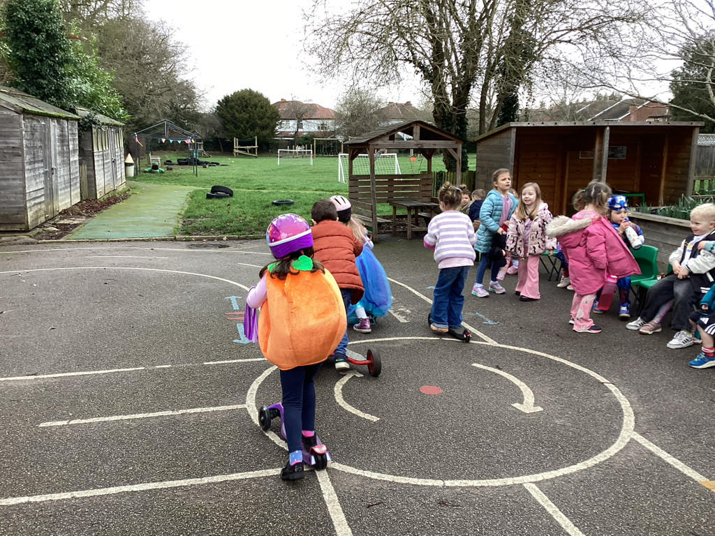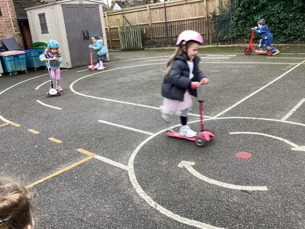 This week we have been discussing and labelling the parts of the body. We have really enjoyed developing our gross motor skills by travelling around the track on bikes and scooters!