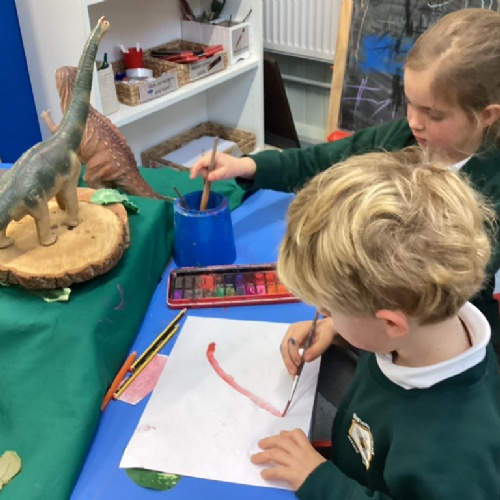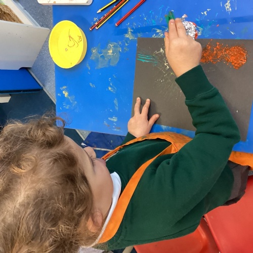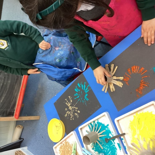 This week we have begun our 'Back in Time' topic. We have discussed what we already know about dinosaurs and we have enjoyed being 'Fossil Hunters' outside. Last week we explored using different tools to create firework pictures and created poppies.