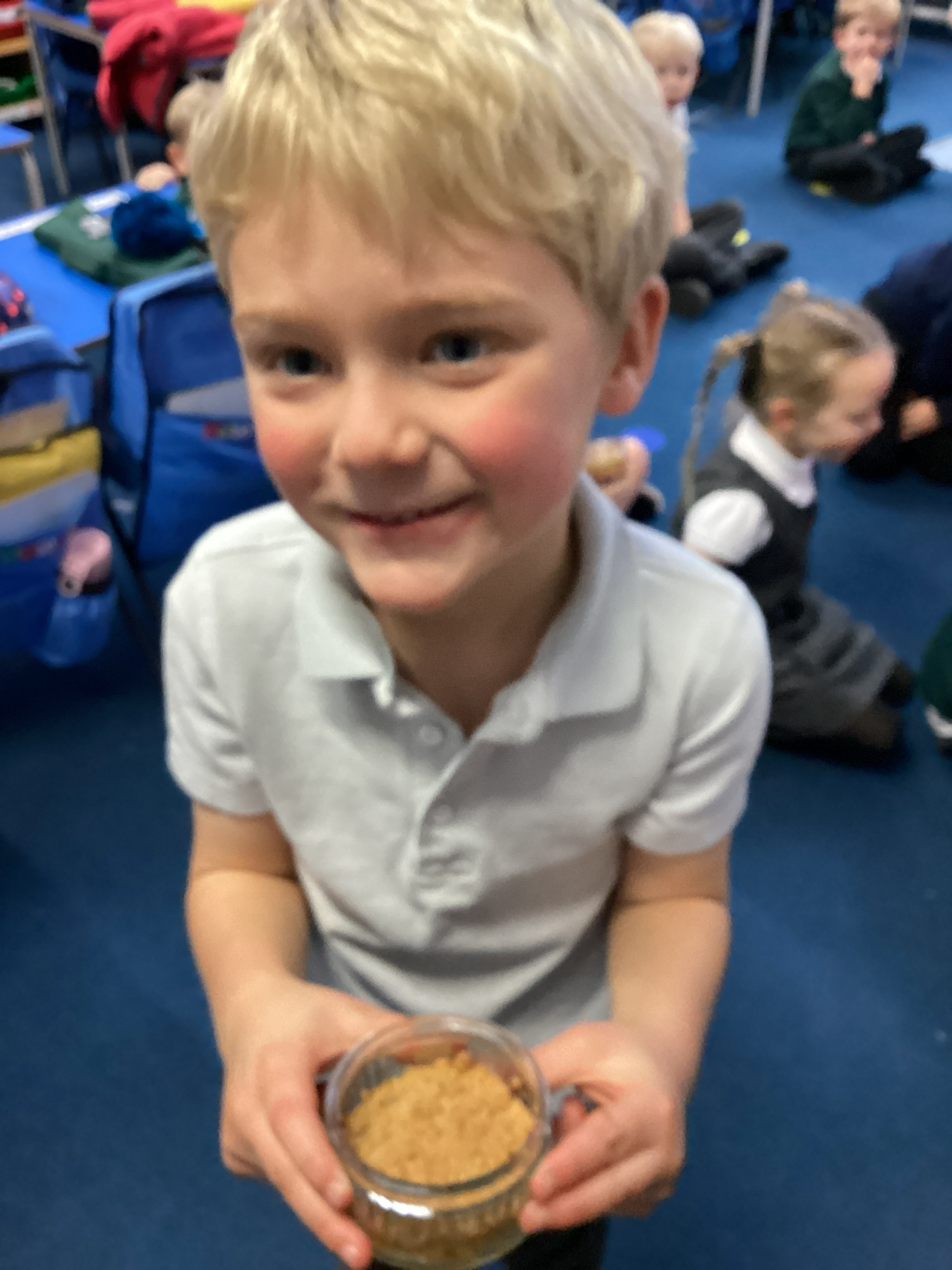 Everyone enjoyed guessing the smells and sharing their ideas with their partner. Next half term we will look at Seasonal changes and Materials.