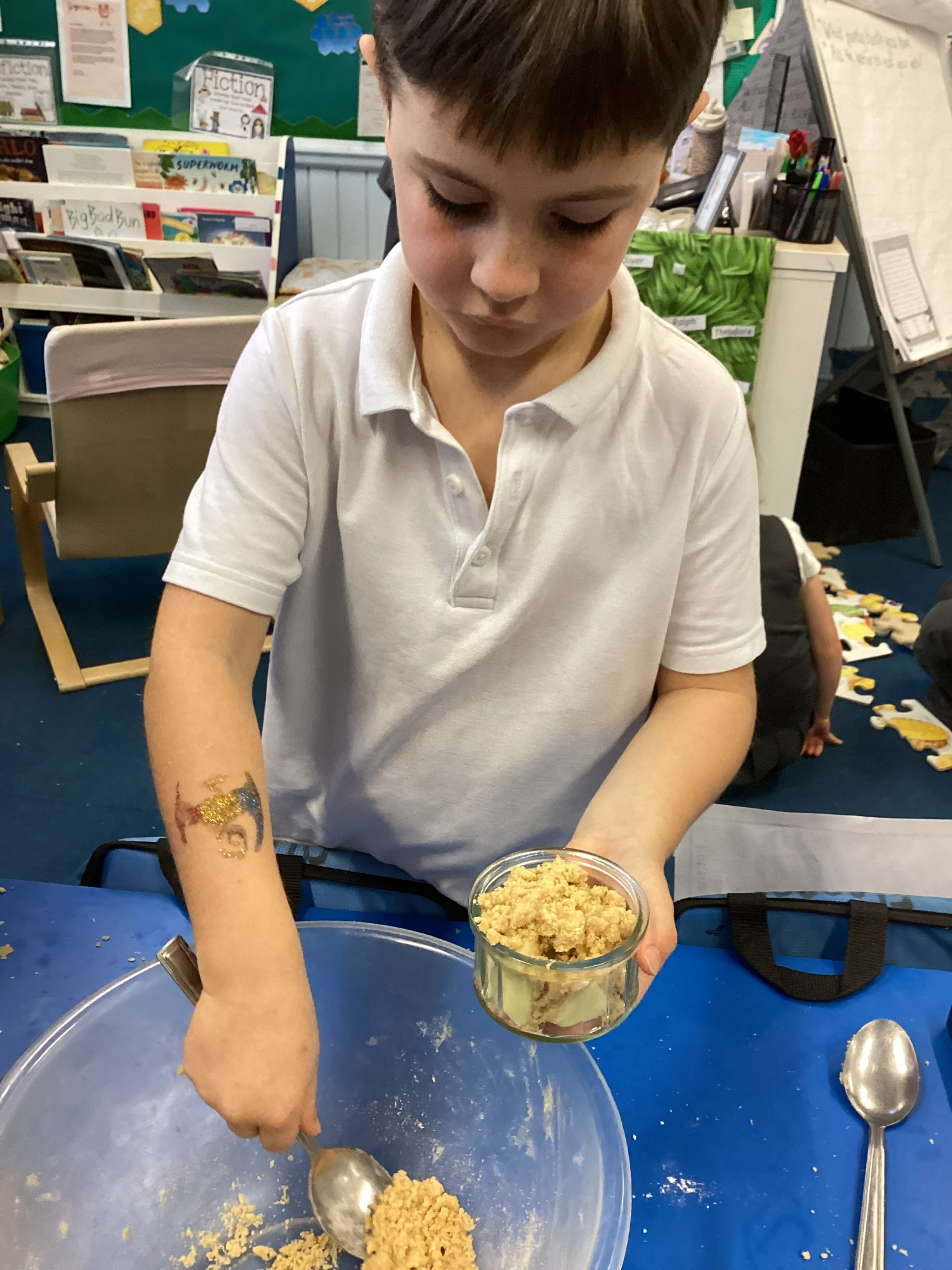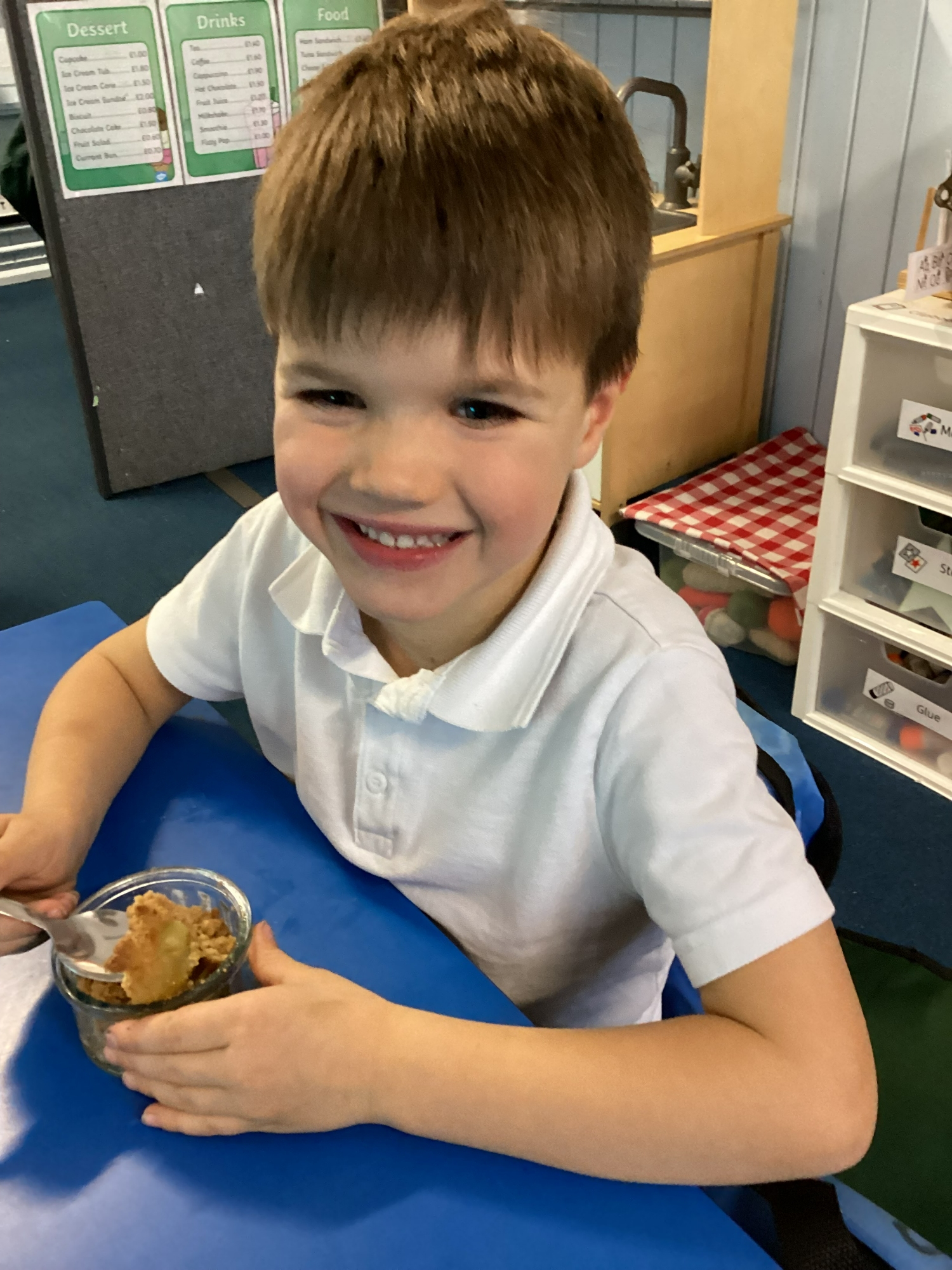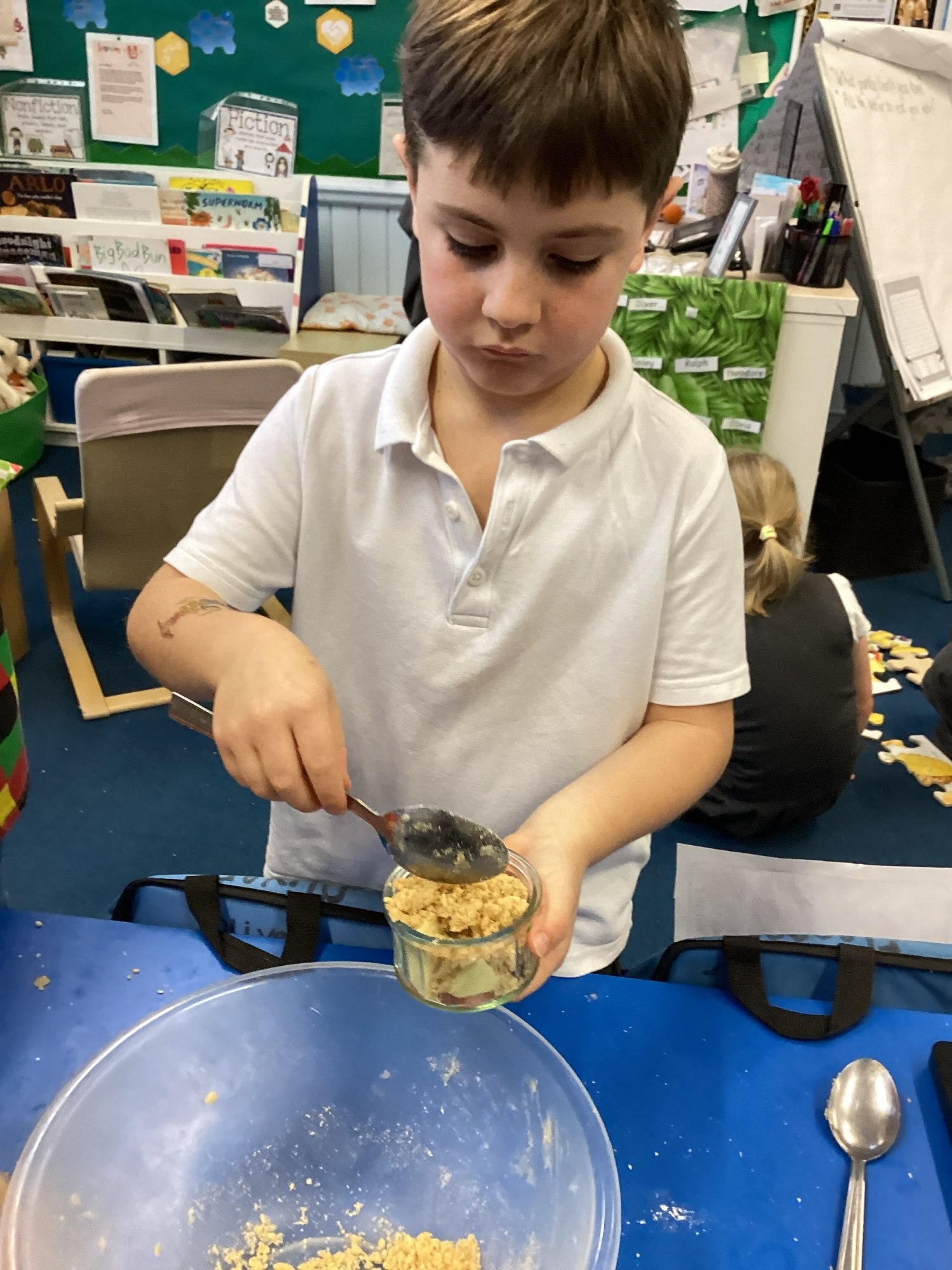 DT - This week we made apple crumble! Everyone really enjoyed following the recipe and tasting our crumble. We have also designed our angels for Art DT morning, the kit list is in your book bag. The letter is saved here as a reminder.