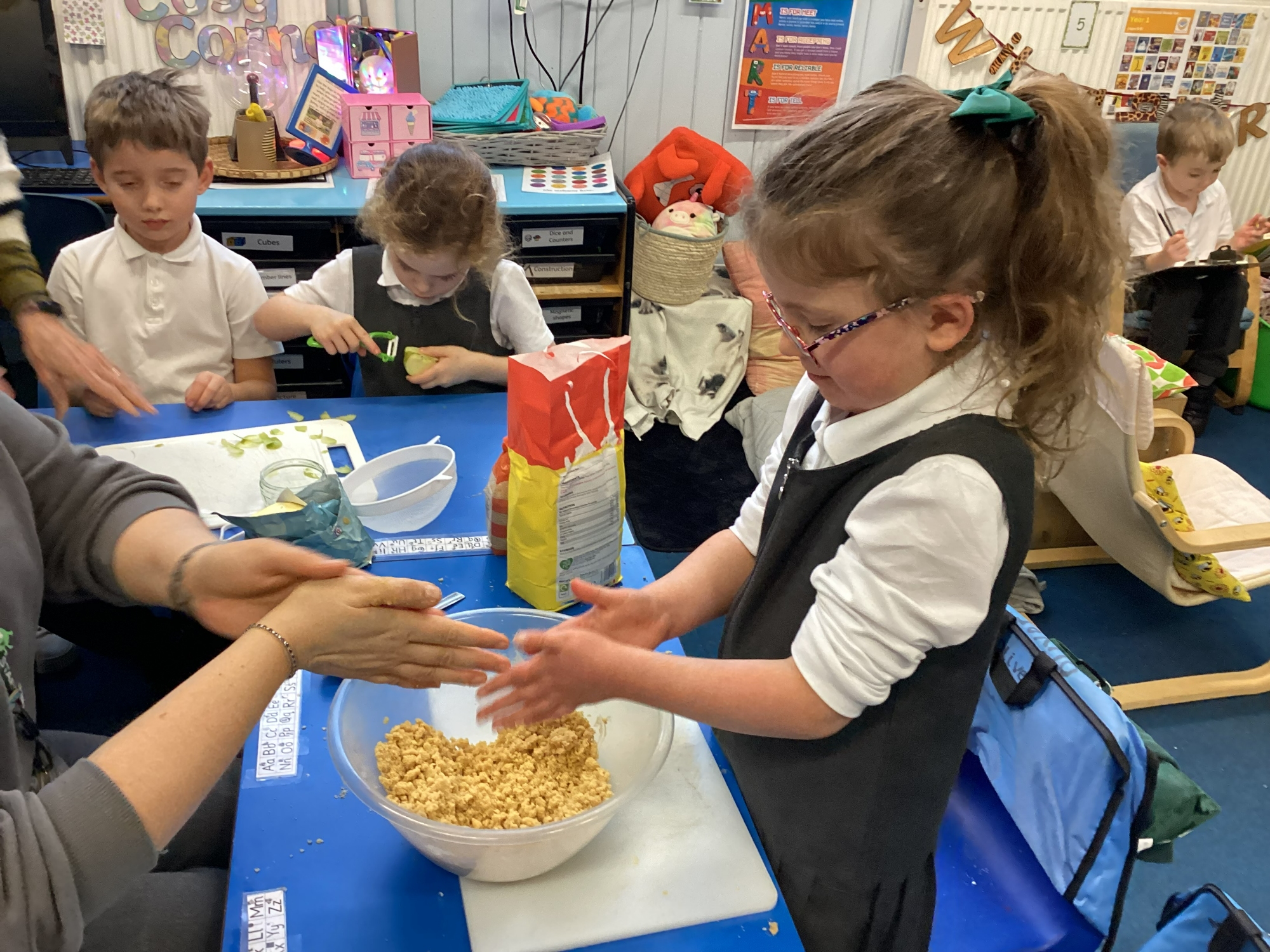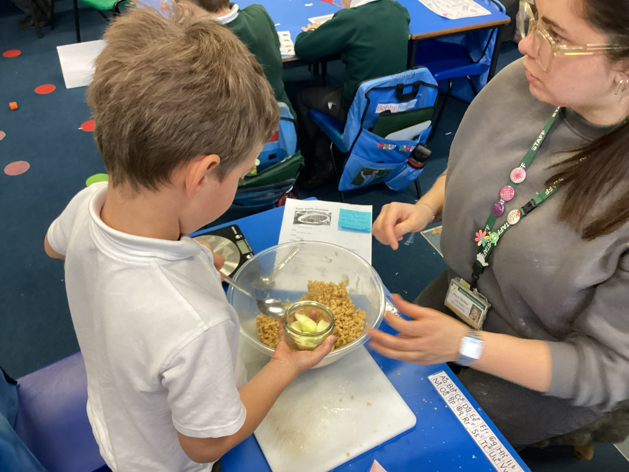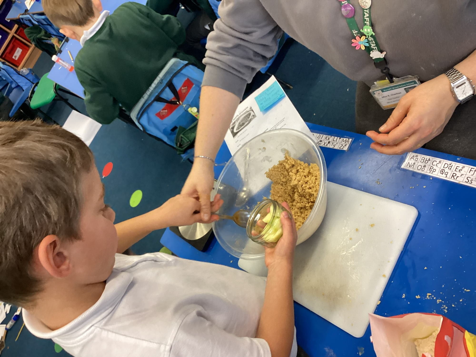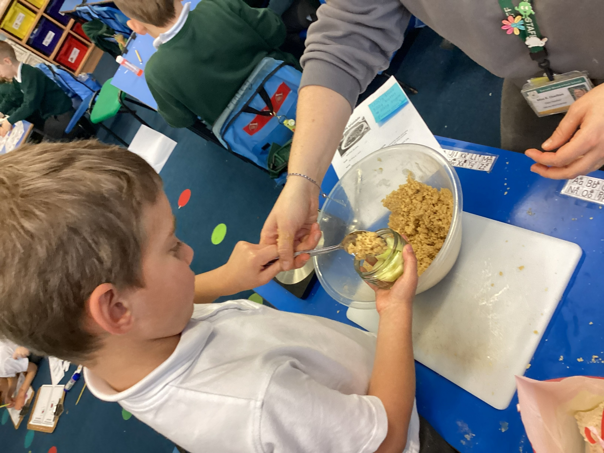DT - This week we made apple crumble! Everyone really enjoyed following the recipe and tasting our crumble. We have also designed our angels for Art DT morning, the kit list is in your book bag. The letter is saved here as a reminder.