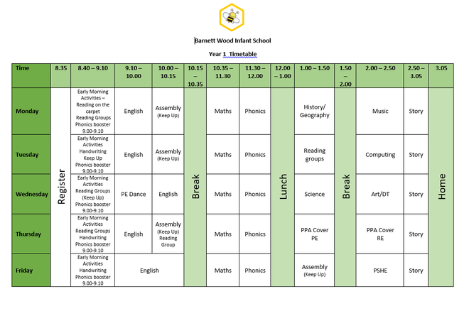 Below shows an example of a typical week in each year group. Please note that these timetables are subject to change.